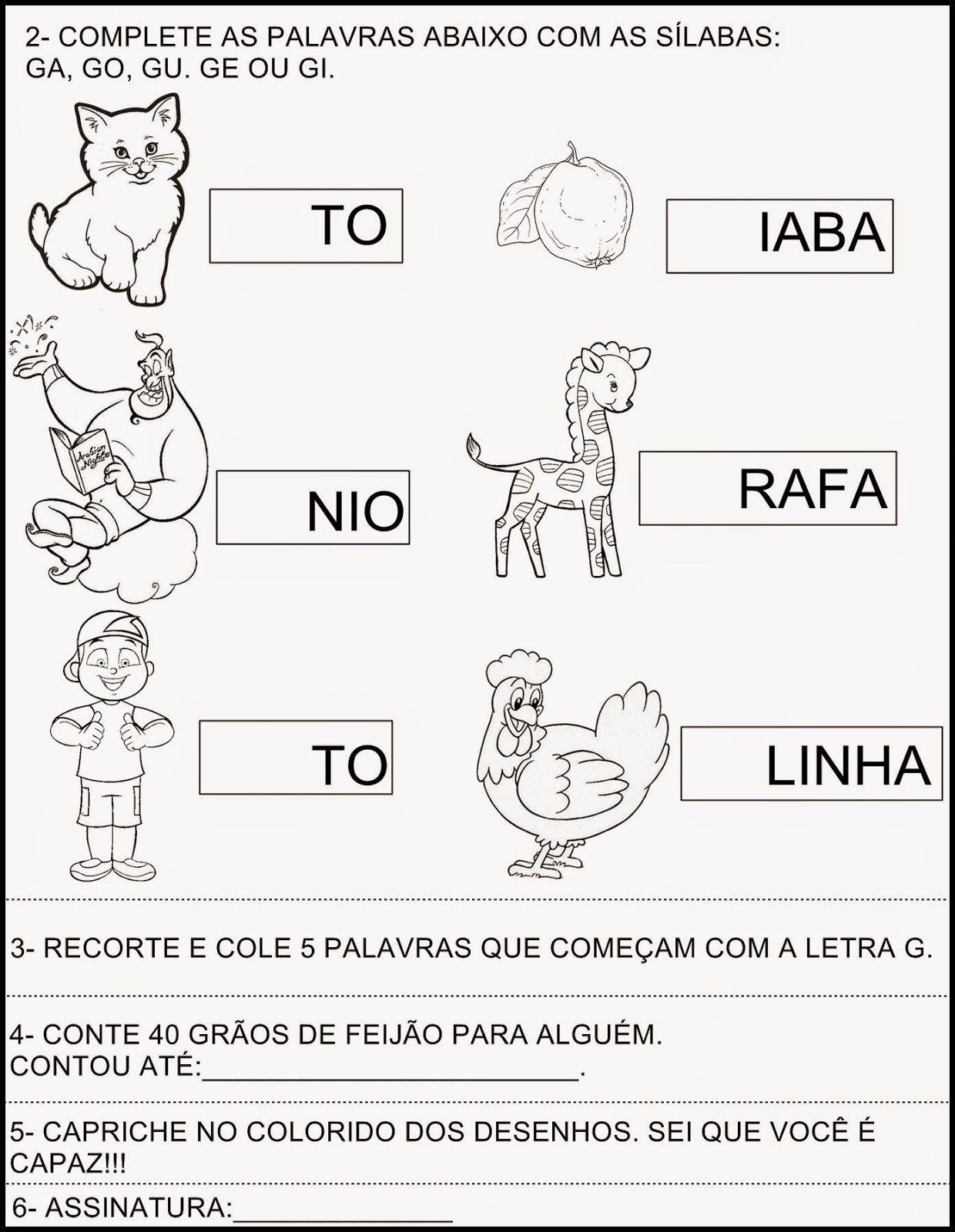 Atividades com a letra g para ensino fundamental prontas para imprimir .