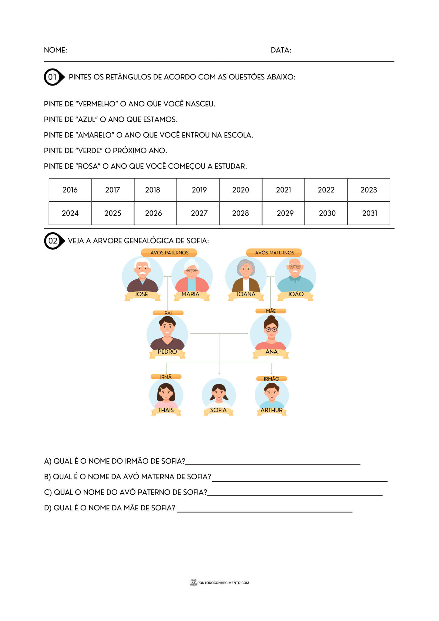 Atividade de história para o 1º ano do ensino fundamental - Ponto do