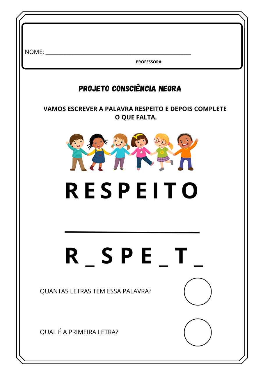 Diversas atividades sobre consciência negra para educação infantil , ensino fundamental e 1° a 5° ano.