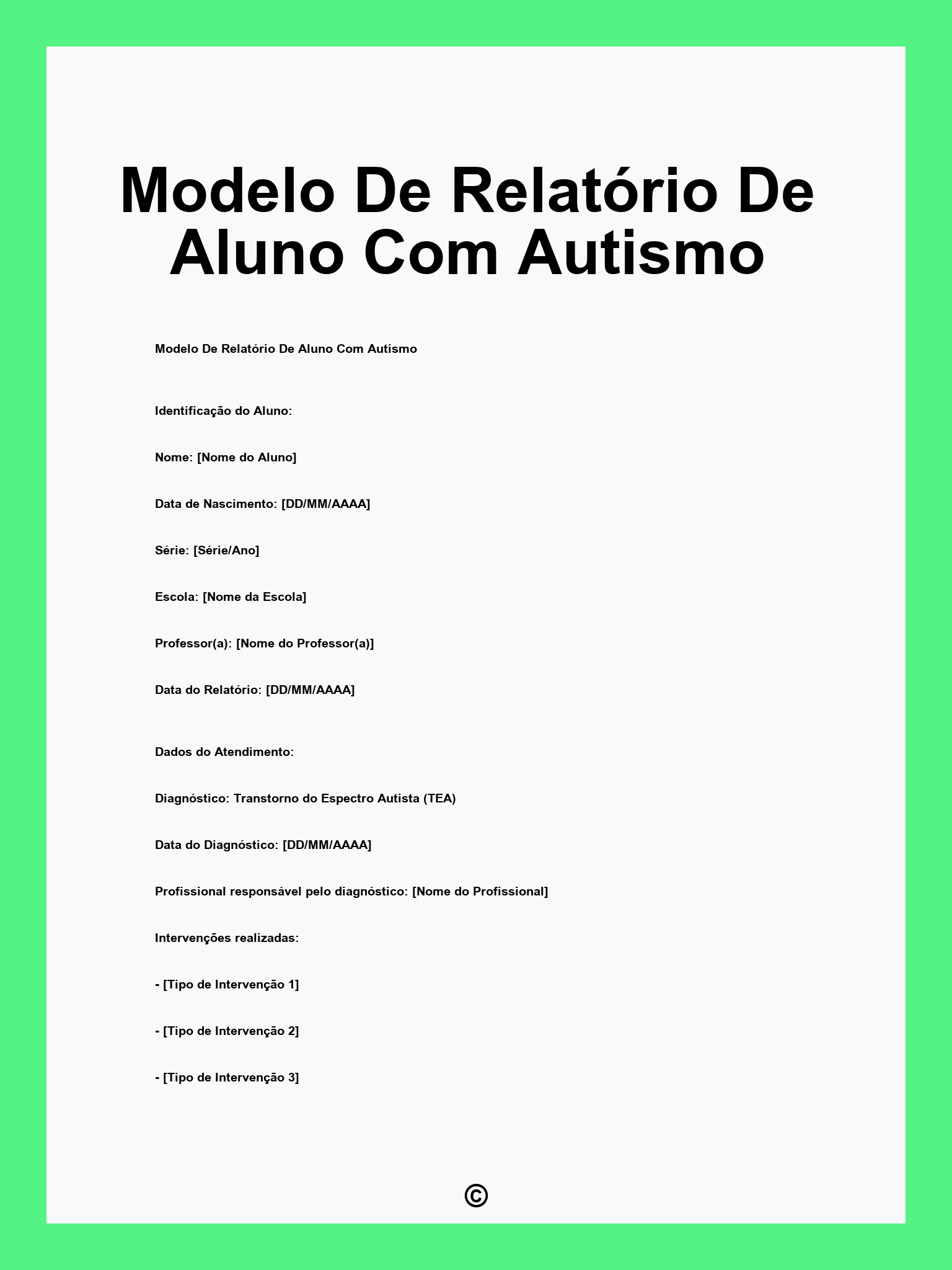 Para que o Relatório de Aluno com Autismo na Educação Infantil seja útil e eficiente, ele deve conter os seguintes elementos: 1. Observações e Avaliações. Primeiramente, registre como a criança se comporta durante as atividades escolares.