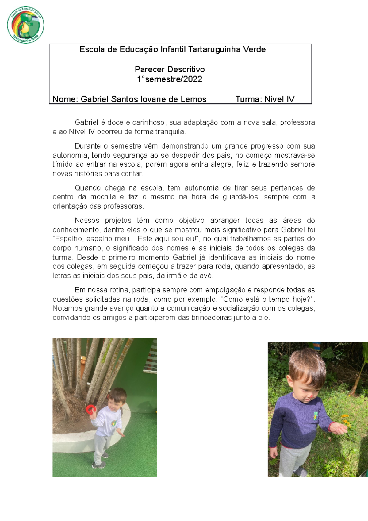 Exemplos parecer descritivo educação infantil de acordo com a bncc .A escola de educação infantil estrela do mar oferece educação para crianças de quatro meses a 5 anos e nove meses de idade, nos seguintes níveis de ensino: Berçário, maternal i e ii, pré.