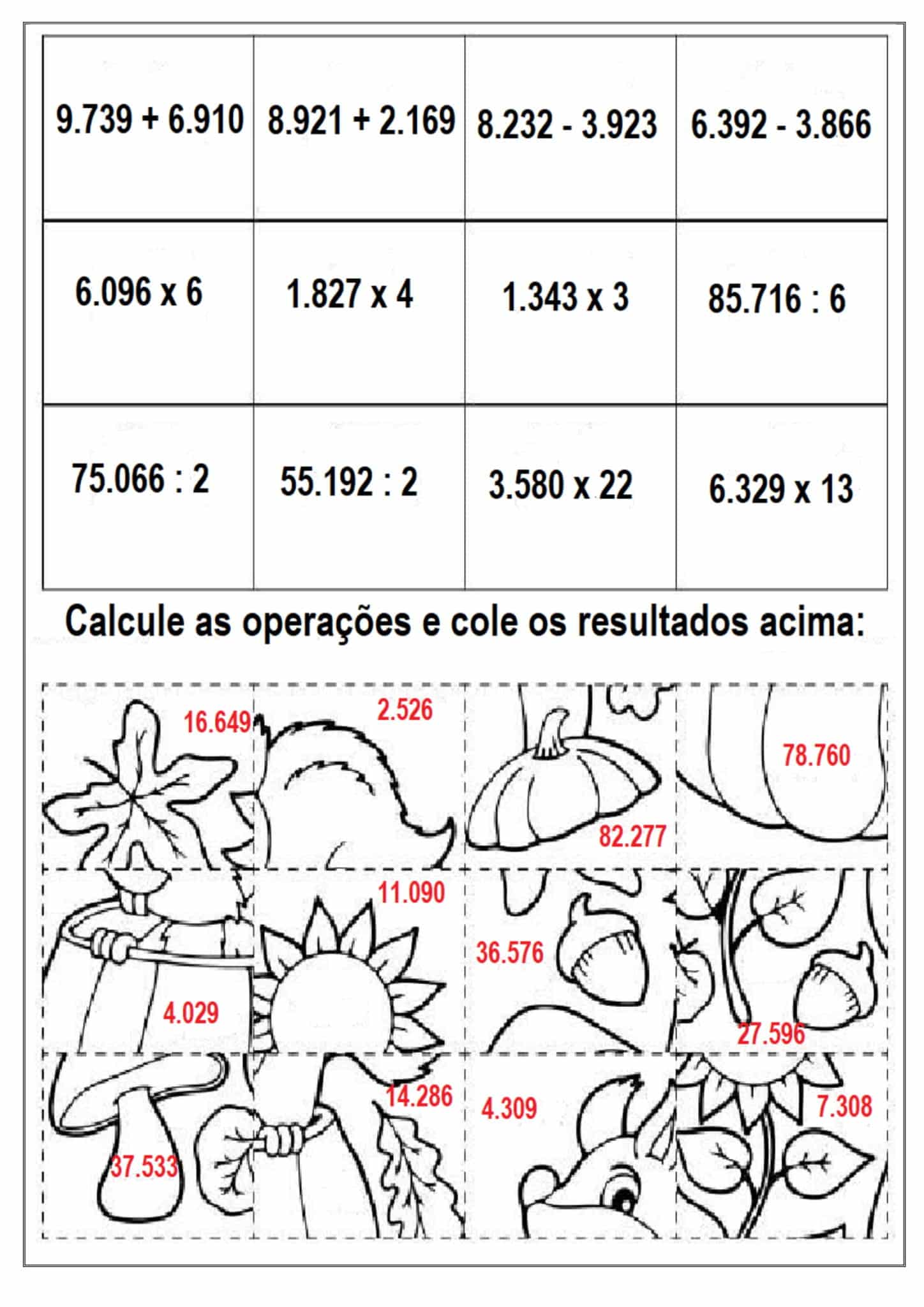Atividade de matemática - as Quatro Operações Básicas - 4º ano – 5° ano - Com gabarito Lista de questões para praticar o cálculo das quatro operações básicas em situações contextualizadas.